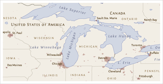 The default thinking tends to be that labels and text on the map are for naming geographic features. While this is extremely important, they function in a number of other valuable ways, too. For example, labels also confirm the locations of features, reflect their character and shape, indicate relationships between them, and symbolize data associated with them. Text, in the form of short blocks or descriptions, is used for essential elements of map design like title, data sources, projection, and scale, as well as to provide an explanation about what a map is showing. Because of their prevalence (especially on reference maps) and tendency to compete for attention with other map symbols, labels and text make also make a strong aesthetic impression on the map reader and contribute to its overall ‘look and feel’. Although every map is different, labels and text deepen our understanding of a place in ways that other graphical elements (like color) cannot.