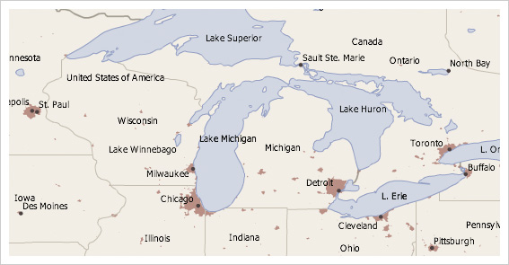 - Visually center and increase the letter-spacing of labels within area features to reinforce their size/shape.