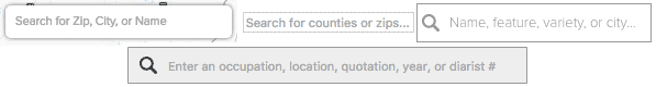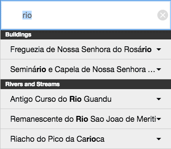 Still, we do what we can. A good search addresses both the where and what questions and presents results in a clear, organized manner. What is fairly straightforward to accomplish with text matching in names, descriptions, and/or attributes of the data. (This can blend into the where question if attributes include place names.) Where might tap into a geocoding service, but could also be limited to the universe of your data, for example searching a list of county names if your map uses county-level data.