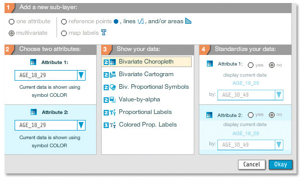 Example of multivariate map types available in indiemapper.