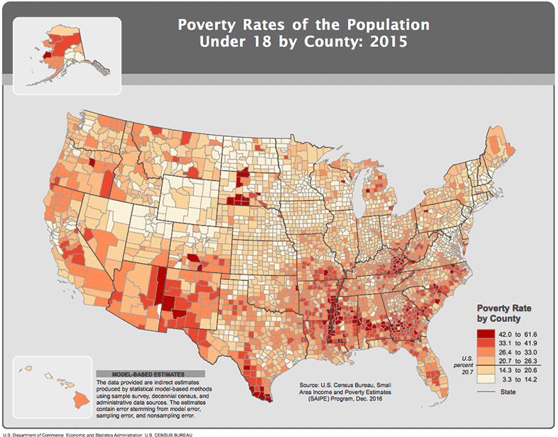 This map of poverty from the US Census is a thematic map, concerned with the geography of a demographic phenomenon.